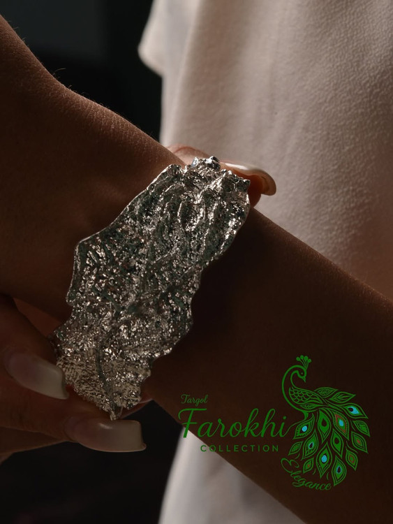 بنگل دستبند زنانه وارداتی طرح سنگی نقره فام