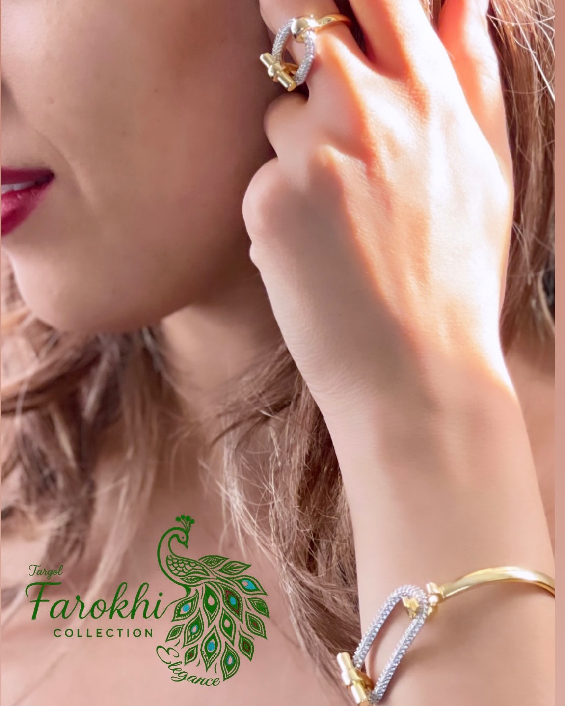 نیم ست دستبند و انگشتر نگین دار کشی چند ردیفه