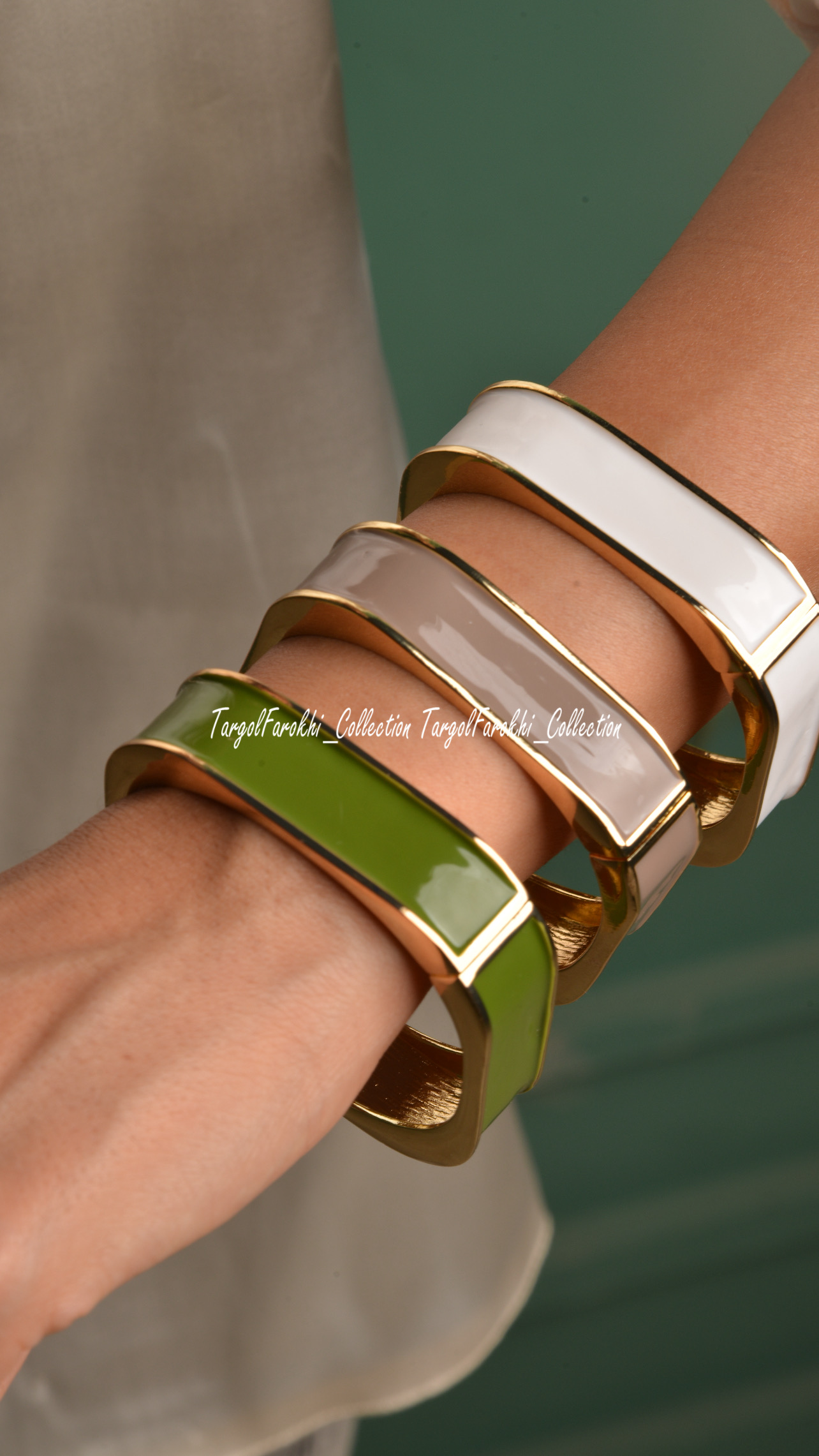 دستبند بنگل زنانه میناکاری وارداتی سفید