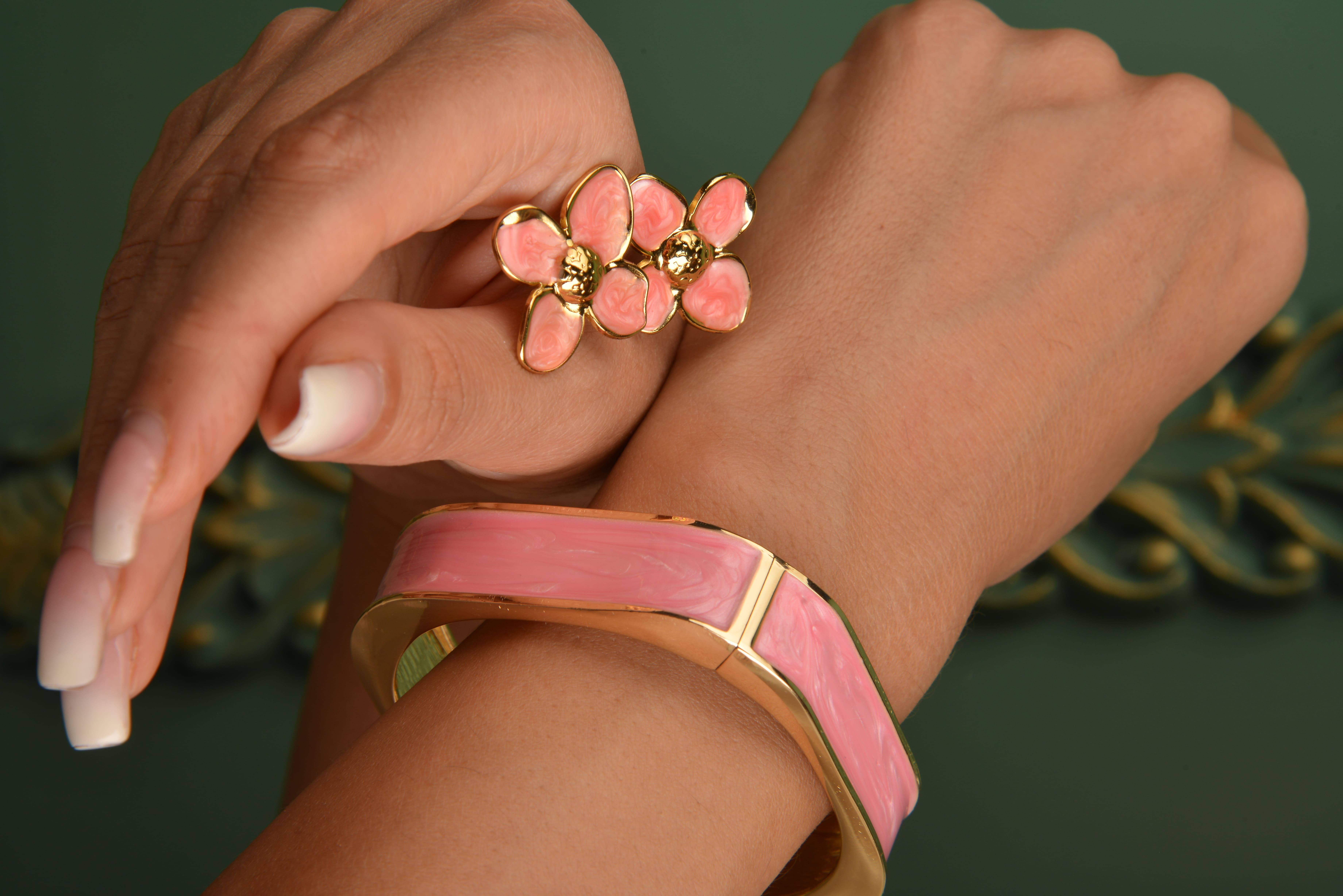 بنگل دستبندزنانه میناکاری صورتی