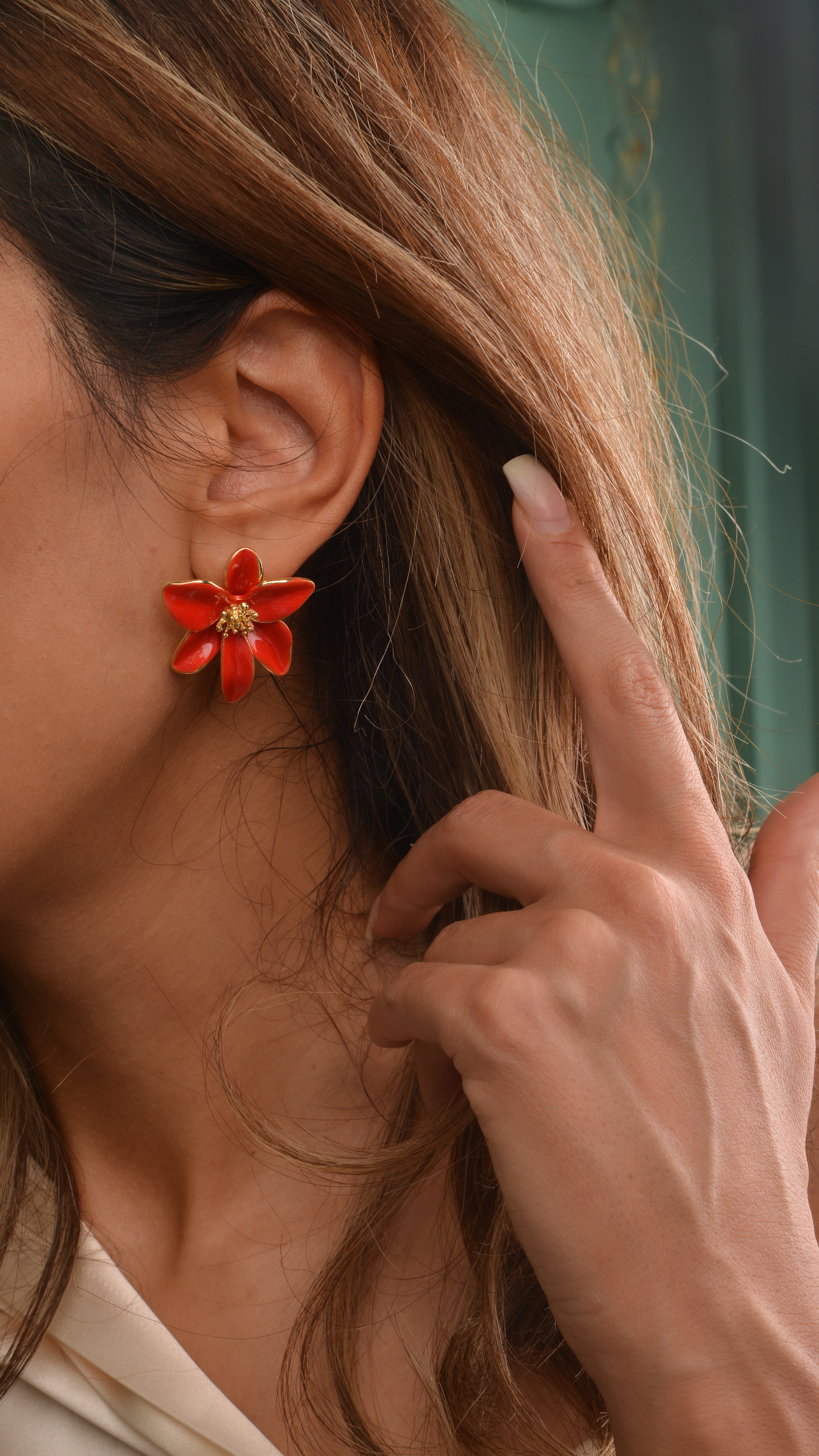 گوشواره قرمز زنانه میناکاری