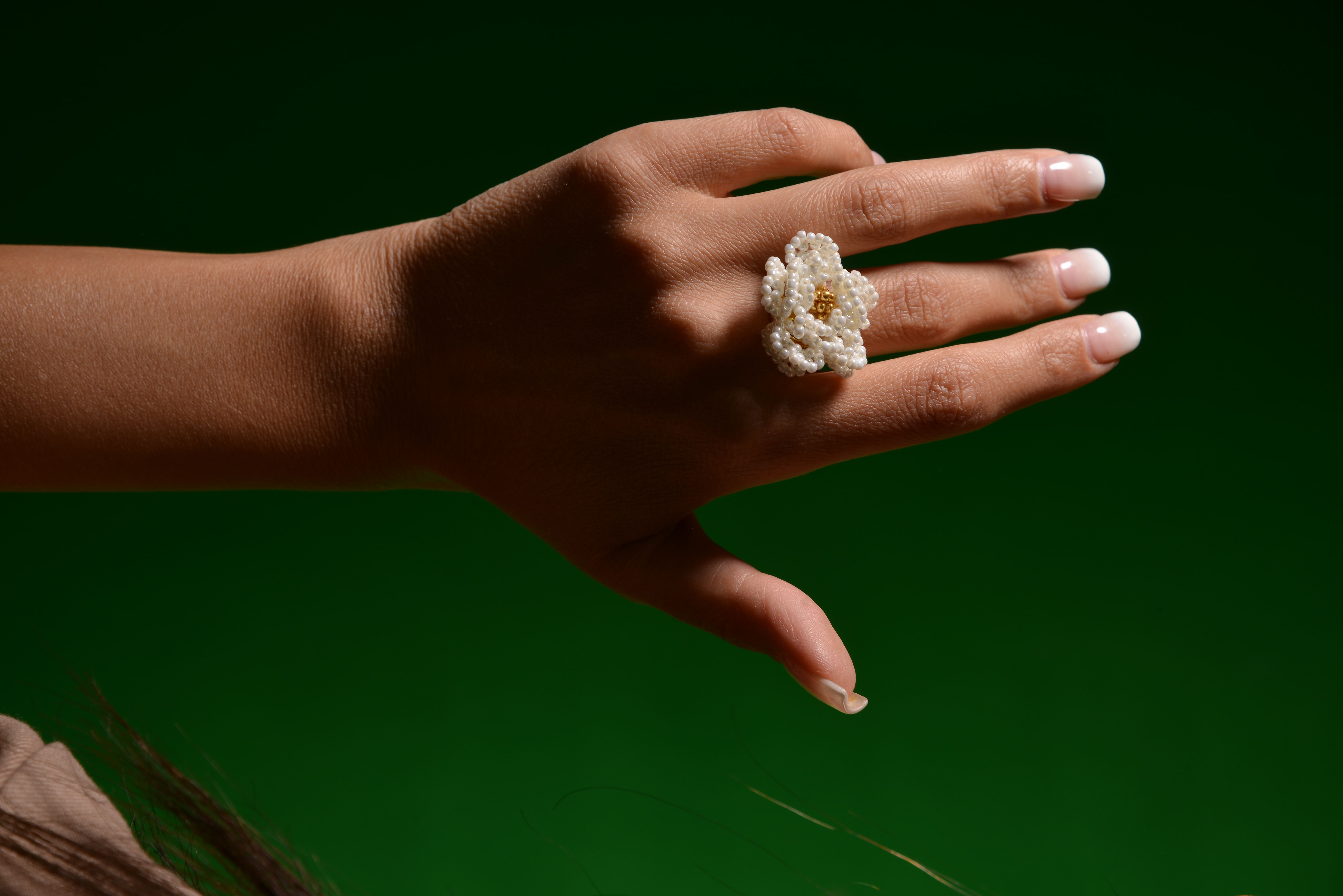 انگشتر گل مرواریدی